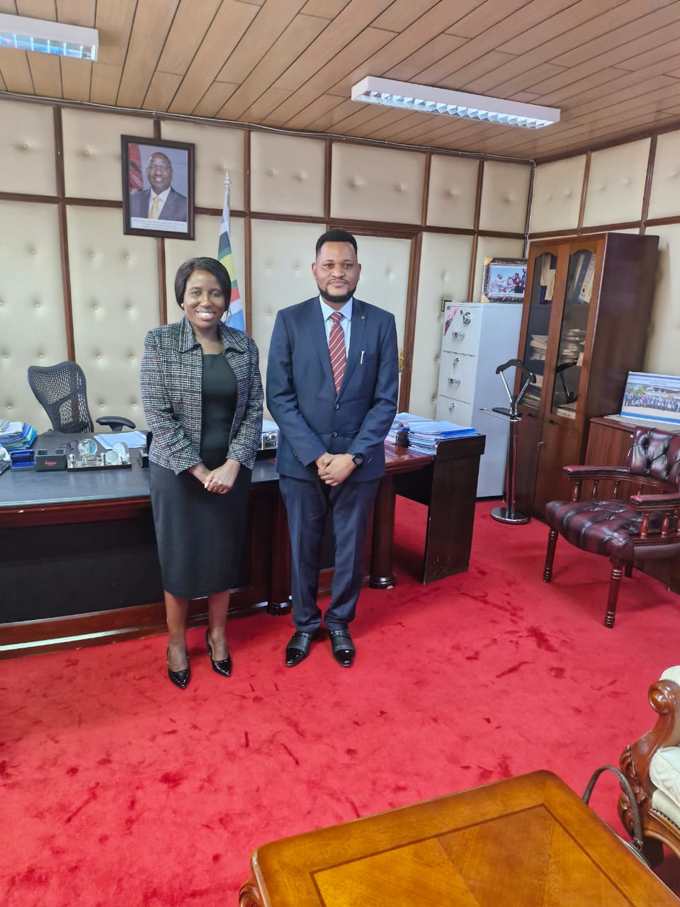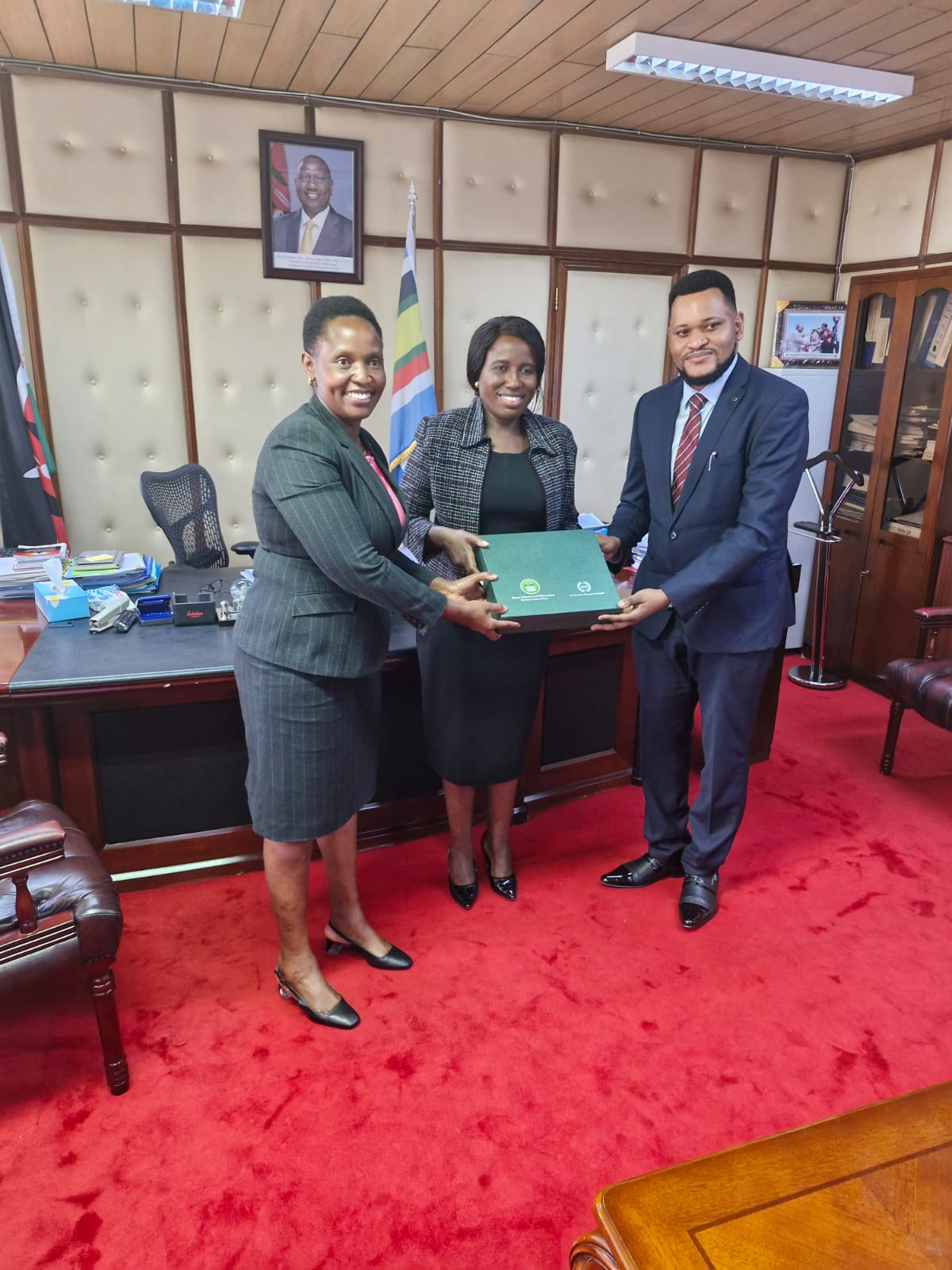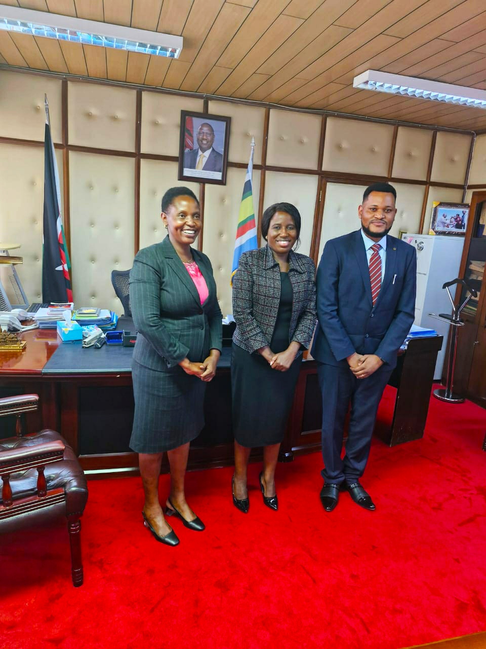 The KLISC Governing Board Chairman Dr. Arnold Mwanzu and Treasurer Dr. Penninah Musangi paid a courtesy call to the Principal Secretary, State Department of Higher Education and Research in the Ministry of Education, Dr. Beatrice Muganda Inyangala. They were accompanied by Prof. Daniel Mugendi, the Chairman of Vice Chancellors Forum in Kenya. The meeting had fruitful discussions on how the Kenyan Government can partner with the Kenya Libraries and Information Services Consortium to support access to quality electronic journals and ebooks in Kenya for research and learning.